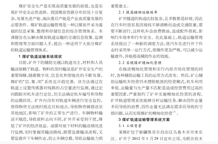 在煤炭生产中,辅助运输是重要组成部分,配套的辅助运输调度体系是矿井作业安全,有效运行的重要保证。