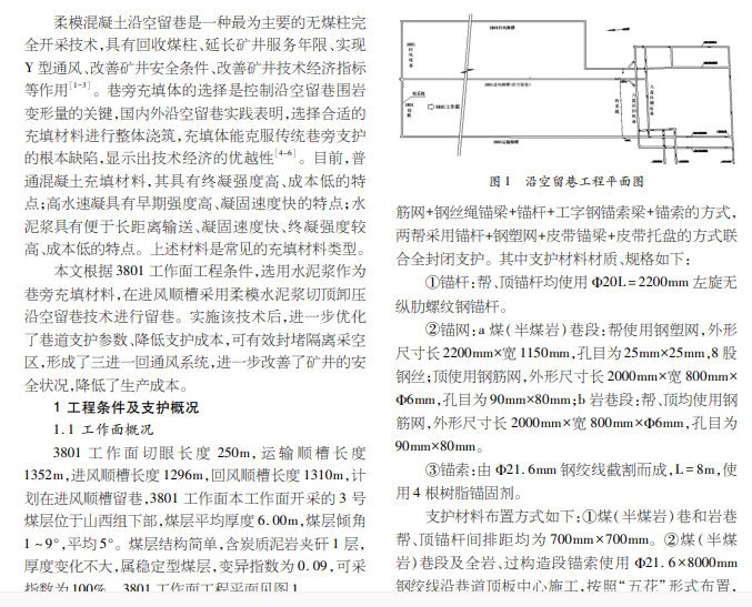 柔模水泥浆 切顶卸压沿空留巷开采技术应用研究