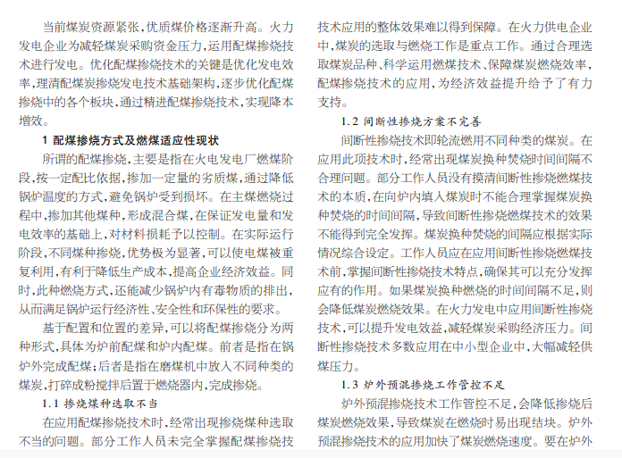 为保障经济收益,多数火力发电企业采用了配煤掺烧方式,降低煤炭采购资金投入。