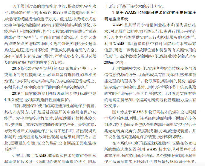基于WAMS和物联网技术 煤矿全电网高压漏电监控系统方案设计