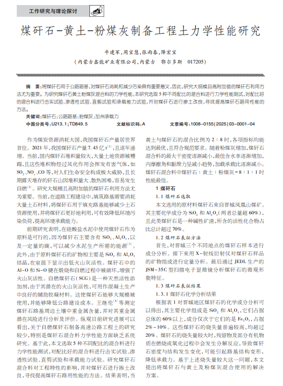 煤矸石-黄土-粉煤灰制备工程土力学性能研究