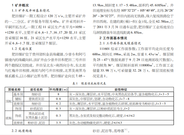 为解决肥田煤矿急倾斜111601综采工作面顶板控制问题,对复杂地质条件下工作面顶板控制技术进行分析研 究。