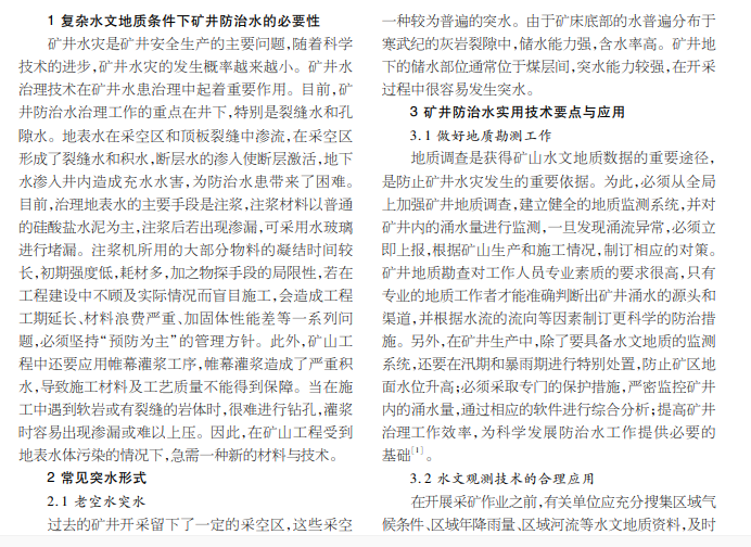 复杂水文地质条件下的矿井防治水技术应用