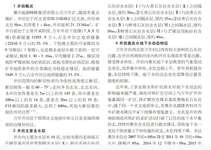 分析研究冀中能源峰峰集团有限公司万年矿的矿井地质,水文地质条件。