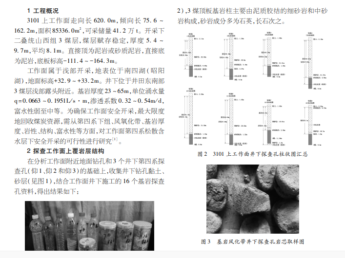 为此,开展了工作面 附近煤系第四系底部。上覆地层赋存特征探查分析等防治水技术的研究,为工作面安全开采提供技术依据。