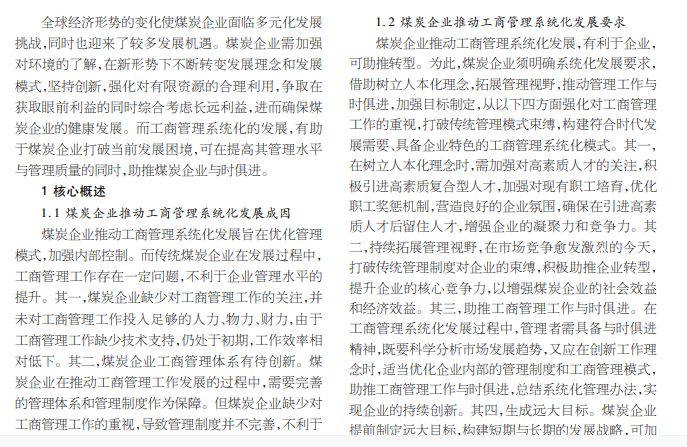 工商管理系统化发展对企业发展具有重要影响。 煤炭企业加强对工商管理系统化发展的重视,可确保在正确的 道路上前行。