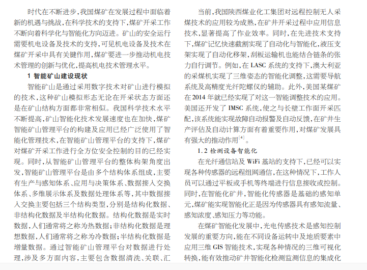 基于智能矿山的煤矿机电技术管理创新