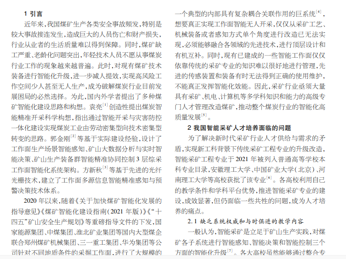 煤矿智能化的高速发展对采矿工程专业教育提出了新的目标和要求。