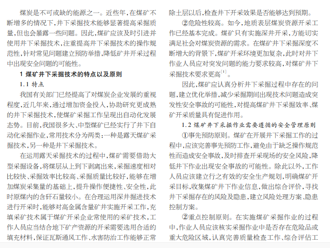 随着城市建设的不断发展,煤矿开采量逐年提升,煤矿为了提升开采效率,需要通过井下采掘技术降低开采深度 增加带来的难度。